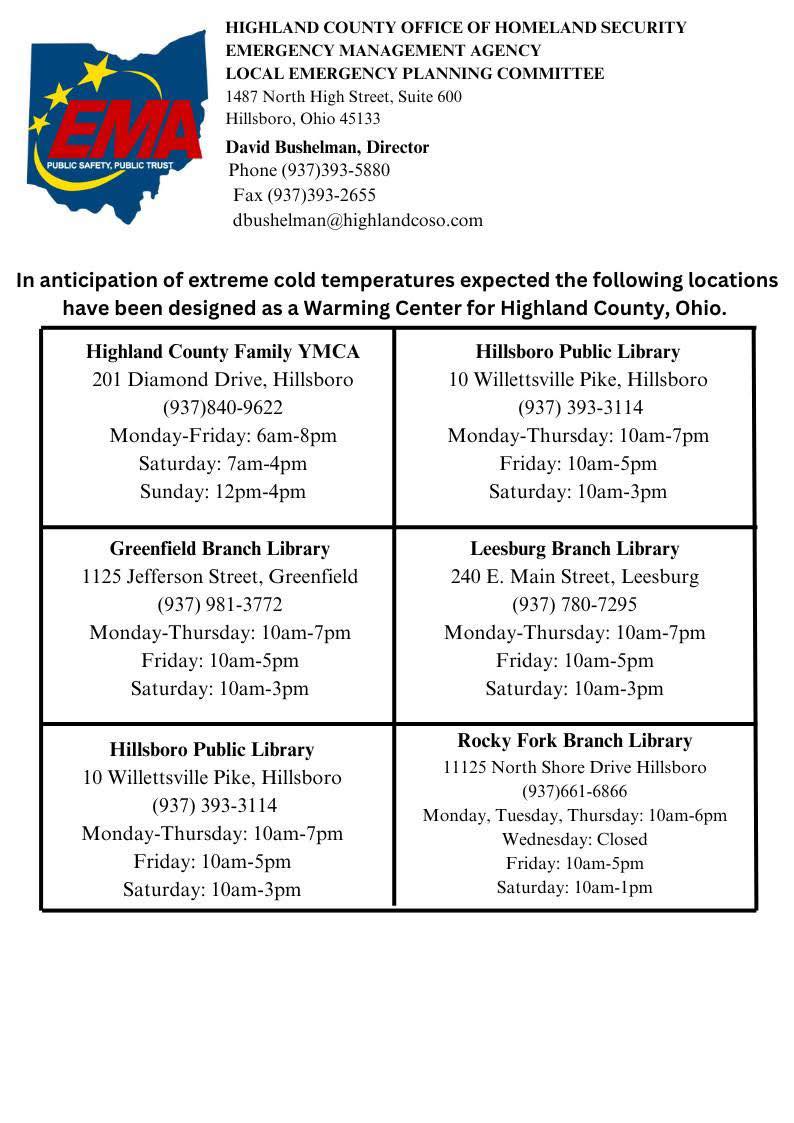 Here is a link to additional warmer center options in Hamilton County: https://www.hamiltoncountyohio.gov/government/departments/emergency_management/extreme_cold_december_2025.php